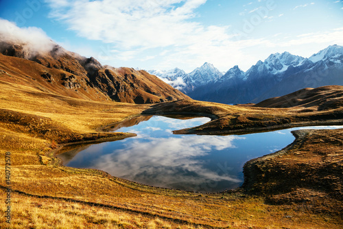 © Leonid Tit, Fototapeta premium Fantastic lake Koruldi at the foot of Mt. Ushba