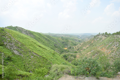 Naklejka premium fantastic landscape scene with mountain, Mountain landscape, Rocks hills and brush fill the wilderness land, landscape scenery, beautiful big mountain views in chakwal, Panjab, Pakistan