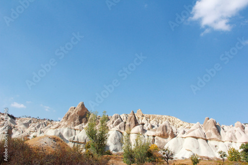 Fototapeta premium fantastic natural landscape with yellow tuff mountains in Cappadocia Turkey