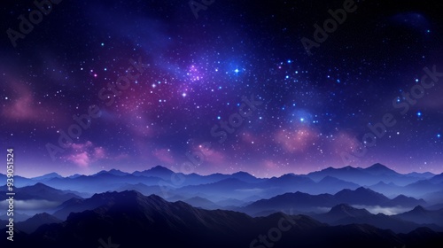 Fototapeta premium Fantastic night landscape with bright arched milky way, purple sky with stars. Neural network ai generated art