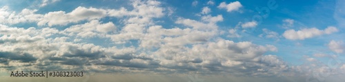 Fototapeta premium Fantastic soft clouds against blue sky, natural composition - panorama