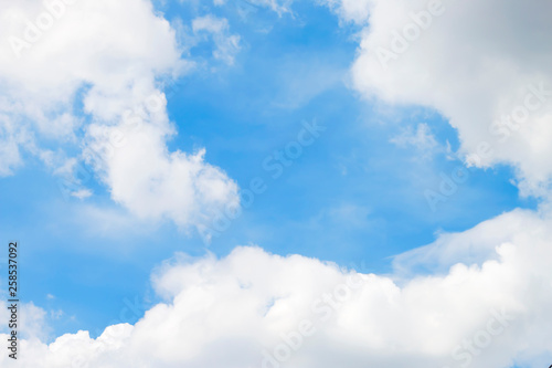 Fototapeta premium Fantastic soft white clouds against blue sky background.