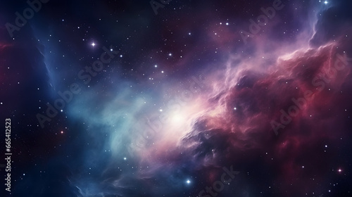 Fototapeta premium fantastic space nebula with glowing cosmic clouds on black background Neural...