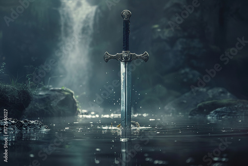 Naklejka premium Fantastic weapon royal sword with beautiful handle and sharp blade, abstract...