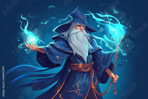 © dragomirescu, Fototapeta premium Fantastic wizard making spells illustration. Ai generated