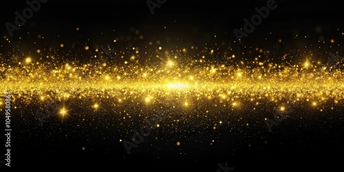 © Chanya2498, Naklejka premium Fantastic yellow glitter light effect on a black background extreme close-up