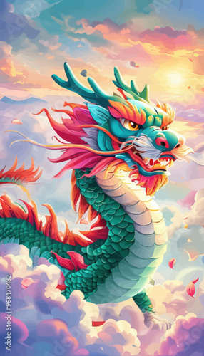 Obraz premium Fantastical Dragon Soaring Through Clouds