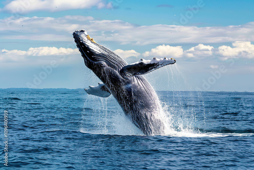 Fototapeta premium Fantastically beautiful majestic huge whale in blue ocean
