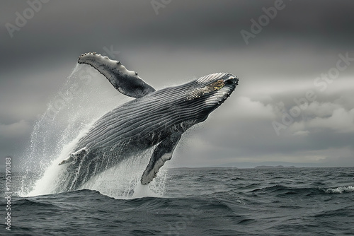 Fototapeta premium Fantastically beautiful majestic huge whale in blue ocean
