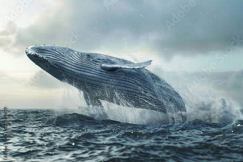 © Kateryna, Fototapeta premium Fantastically beautiful majestic huge whale in blue ocean