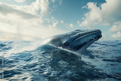 Fototapeta premium Fantastically beautiful majestic huge whale in blue ocean