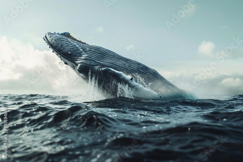 © Kateryna, Fototapeta premium Fantastically beautiful majestic huge whale in blue ocean
