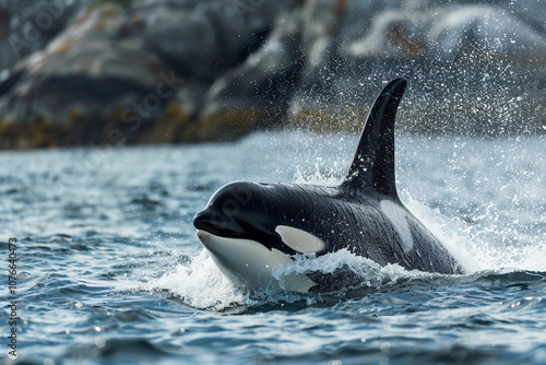 Fototapeta premium Fantastically beautiful majestic huge whale in deep ocean