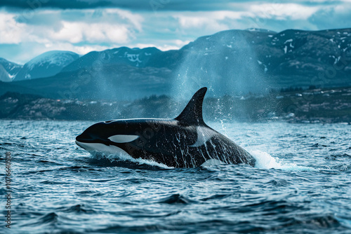 Fototapeta premium Fantastically beautiful majestic huge whale in deep ocean