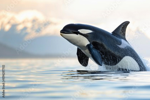 Fototapeta premium Fantastically beautiful majestic huge whale in deep ocean