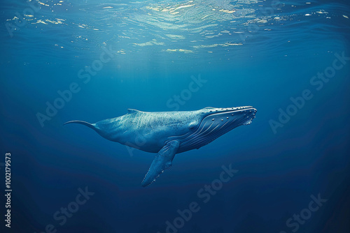 Naklejka premium Fantastically beautiful majestic huge whale in ocean