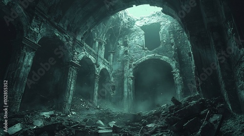Fototapeta premium Fantasy Adventure Scenery, Haunting Ruins of an Ancient Subterranean Cavern...