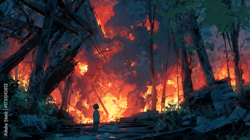 Obraz premium Fantasy Anime Manga Forest on Fire – Intense Illustration