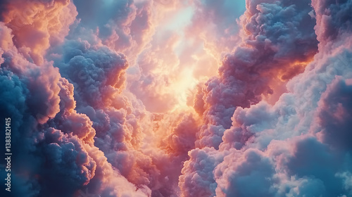 Fototapeta premium Fantasy background with pink clouds in sky, abstract heaven texture with...