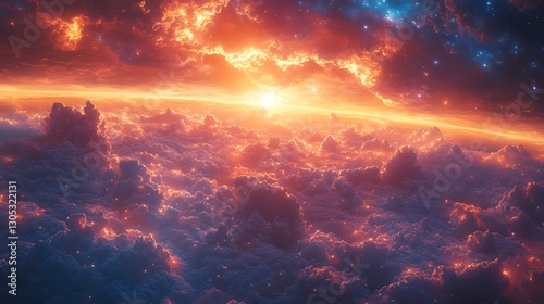 © Lingkan, Naklejka premium Fantasy castle surrounded by floating clouds high resolution hd image