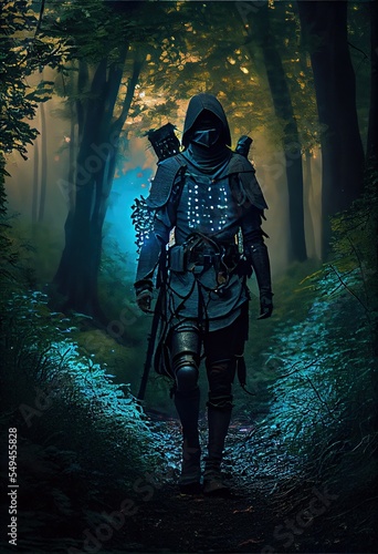 Fototapeta premium fantasy character traveler in forest with fog