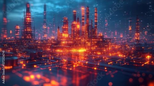 © arlisa, Naklejka premium Fantasy cityscape glow