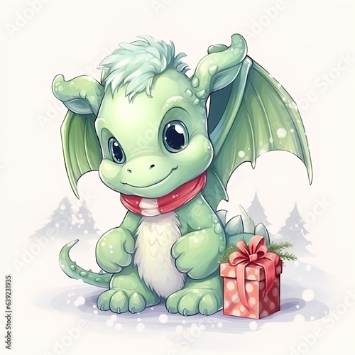 Naklejka premium Fantasy cute dragon with christmas hat, новогодняя открытка, New Year 2024. Generative AI