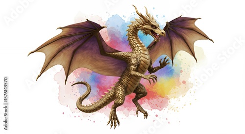 Naklejka premium Fantasy dragon illustration in watercolor style
