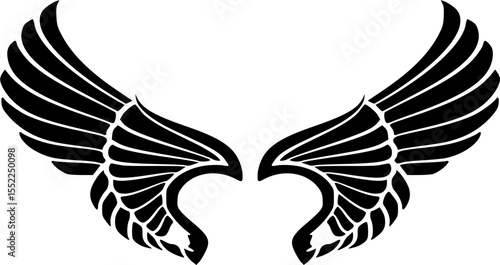 © Hasnain, Fototapeta premium Fantasy Dragon Wings Spread Vector in Black Silhouette