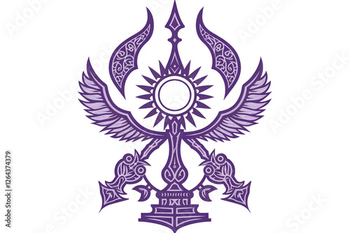 Fototapeta premium Fantasy Emblem with Arabian Lamp, Djinn, and Crescent Moon in Purple and White