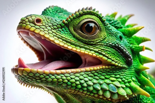 © Danicha, Fototapeta premium Fantasy Green Dragon, Open Mouth, Macro Photography, Isolated