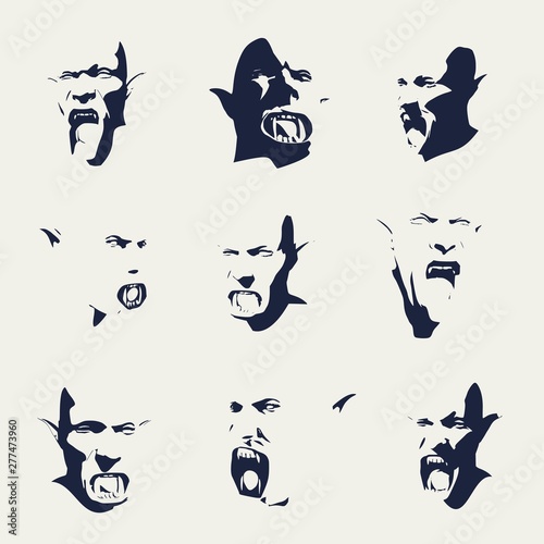 Fototapeta premium Fantasy head of orc with open mouth. Silhouettes with negative emotions