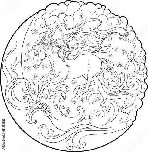 © nadiiaz, Fototapeta premium Fantasy horse running through the sky