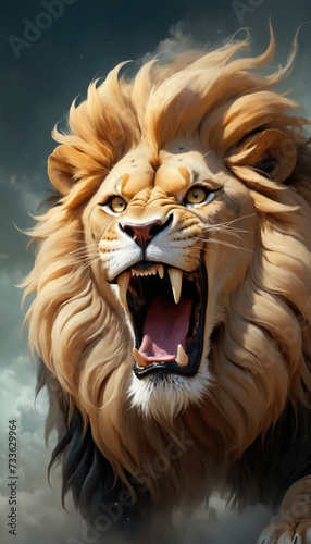 © Roman, Naklejka premium Fantasy Illustration of a wild animal lion. Digital art style wallpaper background.