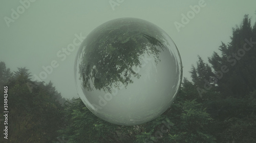 © Blackdorian, Naklejka premium fantasy landscape or tree landscape in sphere glass 3d illustration