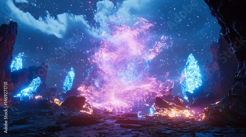 © Bagus Skak, Naklejka premium Fantasy Landscape with Magic Portal.