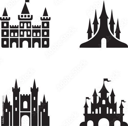 © Vector Store, Fototapeta premium Fantasy Magic Castle silhouette set vector isolated On Transparent Background