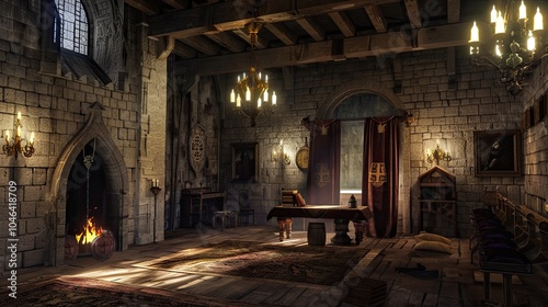 Fototapeta premium Fantasy medieval throne room in the castle.