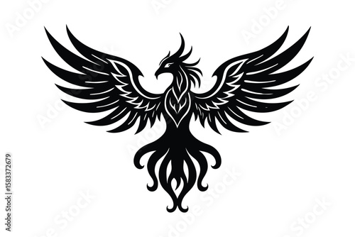 Obraz premium Fantasy phoenix with ornamental wings majestic avian vector art illustration