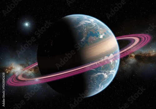 Obraz premium Fantasy Planet with Rings and Distant Moon in Space