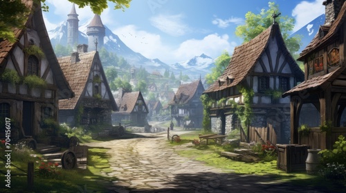 Fototapeta premium Fantasy RPG Village Game Artwork