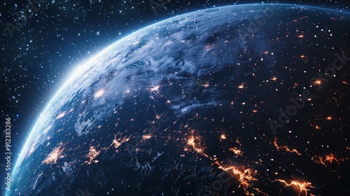 © nurul, Obraz premium Fantasy space blue planet with a bright star in the center landscape