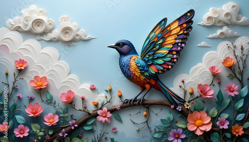 Obraz premium "Fantasy Sparrow in Mystical 3D Watercolor Quilling Art"