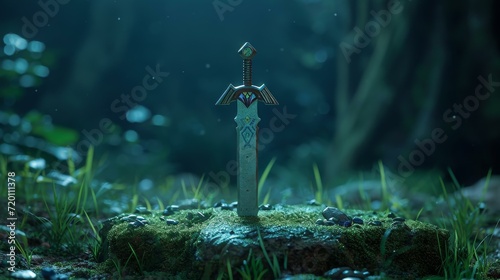 © Eman Suardi, Naklejka premium Fantasy sword in the stone excalibur