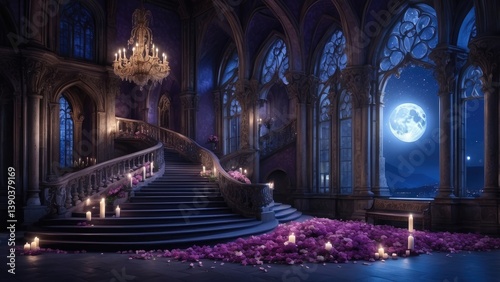 © MST, Fototapeta premium fantasy-themed scene with a grand staircase leading up to an ornate balcony