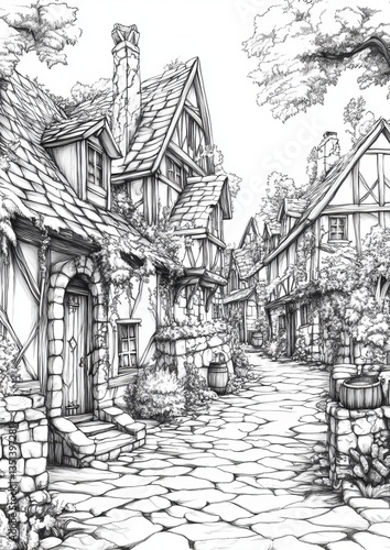 © Sumon, Fototapeta premium Fantasy Village Coloring Pages