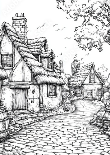 © Sumon, Obraz premium Fantasy Village Coloring Pages