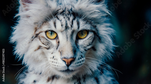 © Yu, Obraz premium Fantasy White Furry Creature With Golden Eyes and Paw Raised