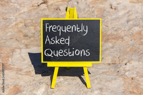 © Dzmitry, Fototapeta premium FAQ frequently asked questions symbol. Concept words FAQ frequently asked questions on black chalk blackboard on a beautiful stone background. Business and FAQ frequently asked questions concept.