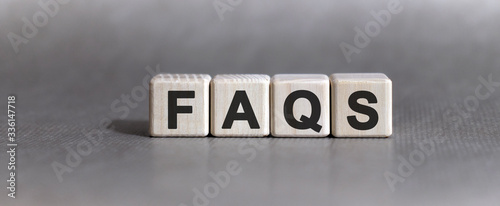 © Aksana Kavaleuskaya, Obraz premium FAQS text on wooden cubes on a monochrome background